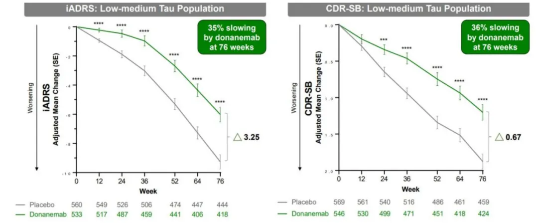 2023年7月,礼来宣布了Donanemab的最新完整III期临床数据。与安慰剂相比,接受Donanemab治疗18个月内,早期患者的认知与功能下降速度减缓了35%。在轻度认知功能障碍的患者中效果更加明显,减缓幅度超过了50%,并且72%的患者在使用该药物一年左右就可以基本清除所有斑块。