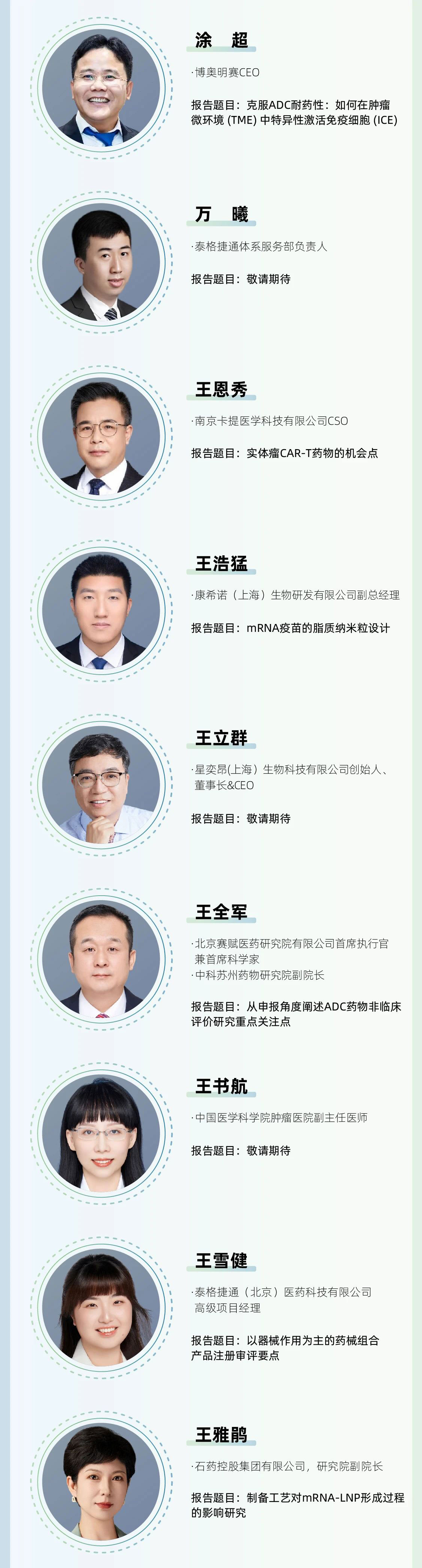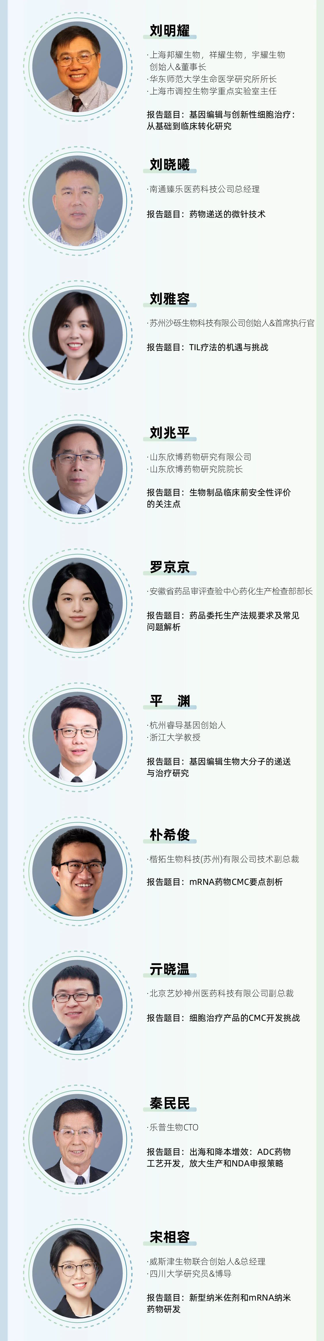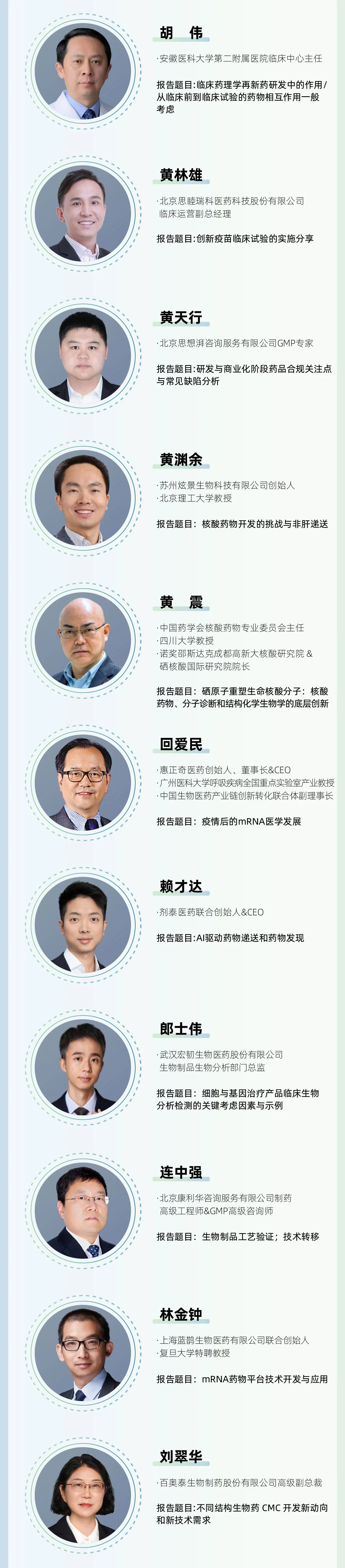 本届大会计划组织十余场论坛、邀请近百位生物医药创新产业专家,为1000余位参会代表搭建一个学习、交流和合作的平台。大会将聚焦生物医药前沿,围绕抗体药物、细胞治疗药物、基因治疗药物、核酸药物和新型疫苗等创新药物研究、开发与产业化的热点和难点问题,积极开展学术交流、资本对话和产业合作,探讨我国创新药物研发与产业化的发展前景及创新趋势,营造高质量发展的医药创新生态环境。