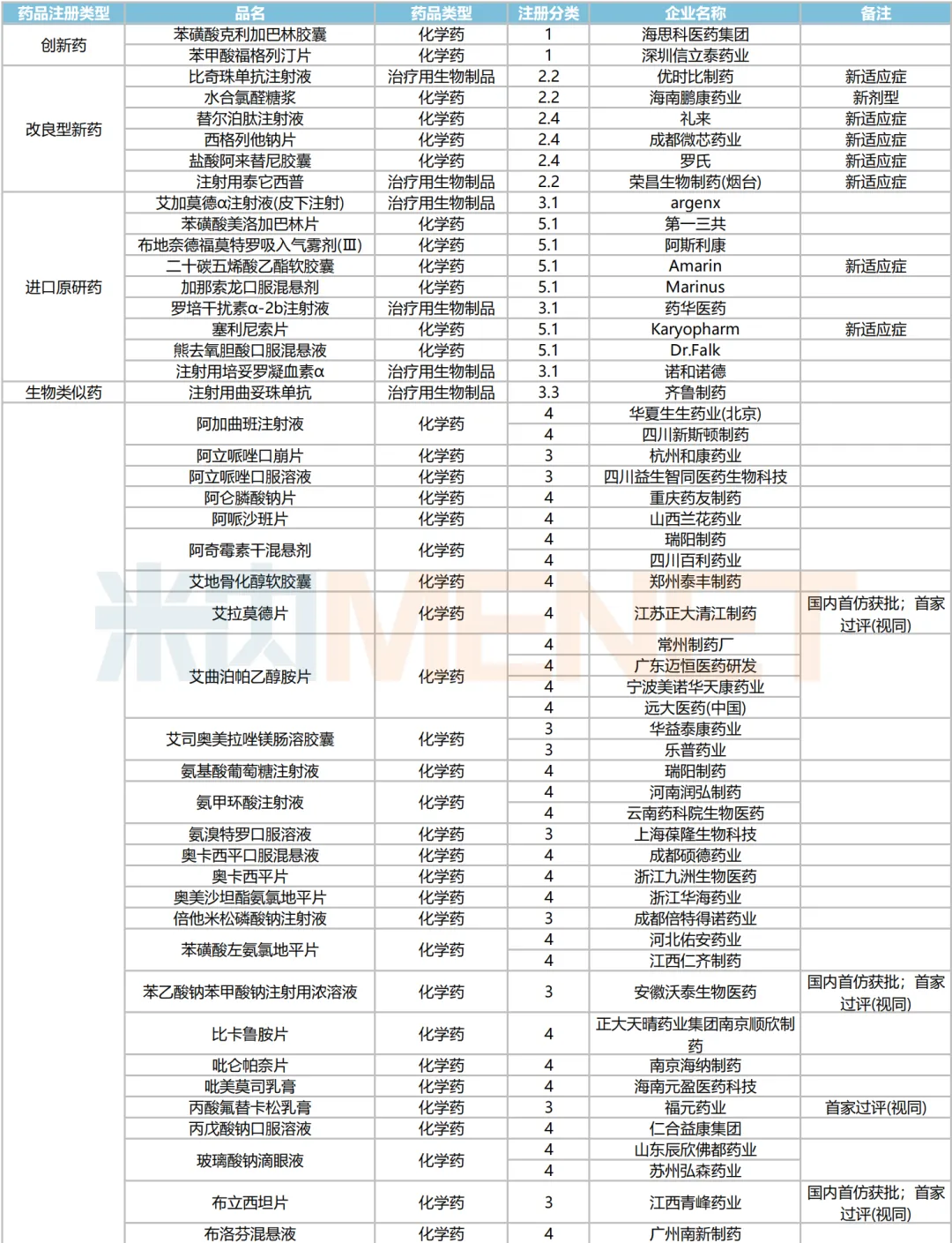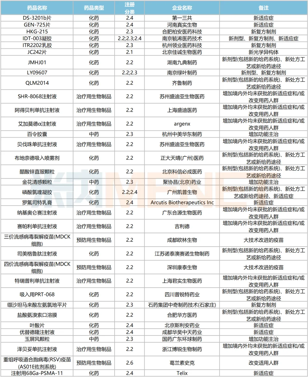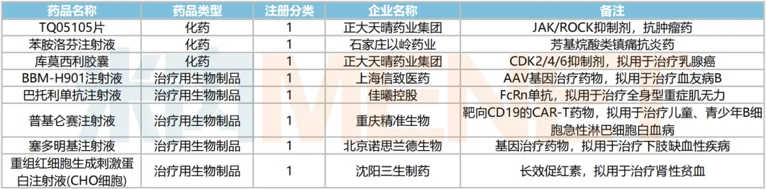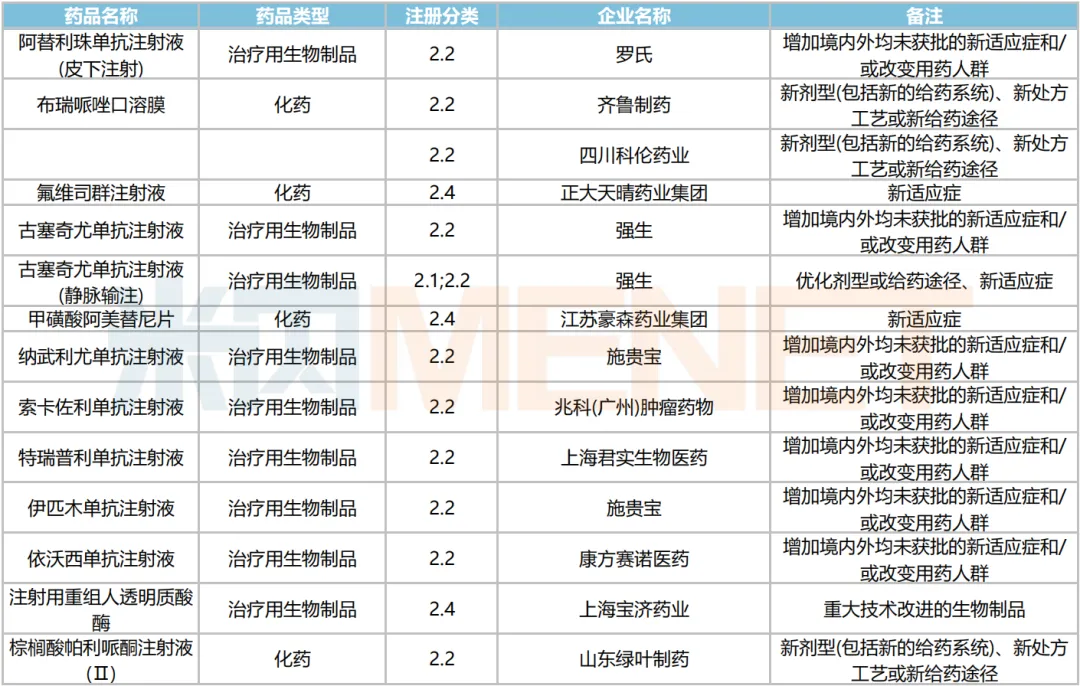 2024年7月主要注册类型品种获批情况