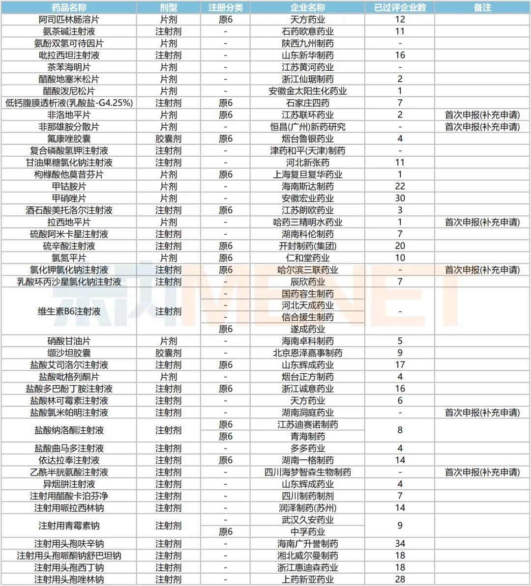 2024年7月,43个品种的一致性评价补充申请获CDE承办。非洛地平片、非那雄胺分散片、拉西地平片、氯化钾氯化钠注射液、盐酸氯米帕明注射液、乙酰半胱氨酸注射液等6个品种首次有企业申报。