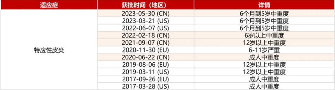 一开始,度普利尤单抗获批的仅是成人中重度AD患者,这是AD最小的细分人群。不过,由于度普利尤单抗疗效出色,其很快就拓展至更年轻的青年,甚至幼儿AD患者,患者群体数量大幅增长。