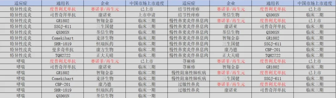 虽然目前国内尚未有IL-4Rα药物上市,但多家公司的产品均已经进入到临床后期,像极了当年全民研发PD-1抑制剂的盛况。