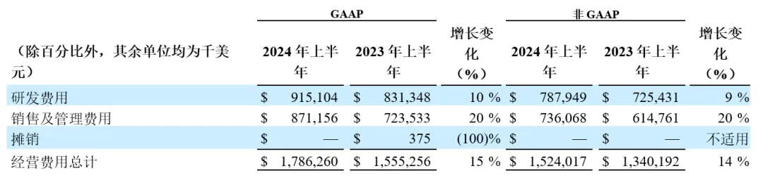 下表分别概述2024年上半年和2023年上半年的经营费用: