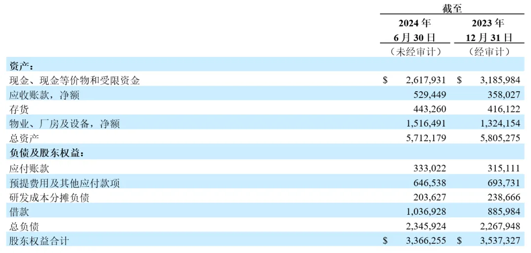 经营活动所用现金:在截至2024年6月30日止的季度中,经营活动所用现金为9,600万美元,去年同期为2.94亿美元,主要由于经营杠杆效益的提升。