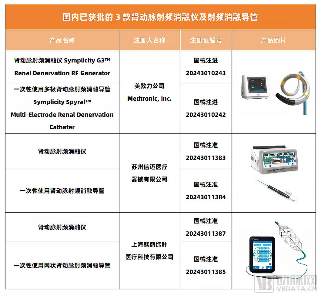 值得注意的是,此次信迈医疗与魅丽纬叶两家企业的肾动脉射频消融仪获批,实现了该领域国产零的突破。这意味着,国产创新势力将与全球器械巨头同台竞技。