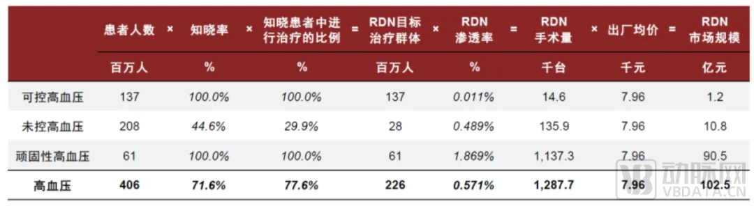 ▲中国RDN治疗高血压远期市场空间测算 图片来源:《肾去交感神经术(RDN)行业分析报告》