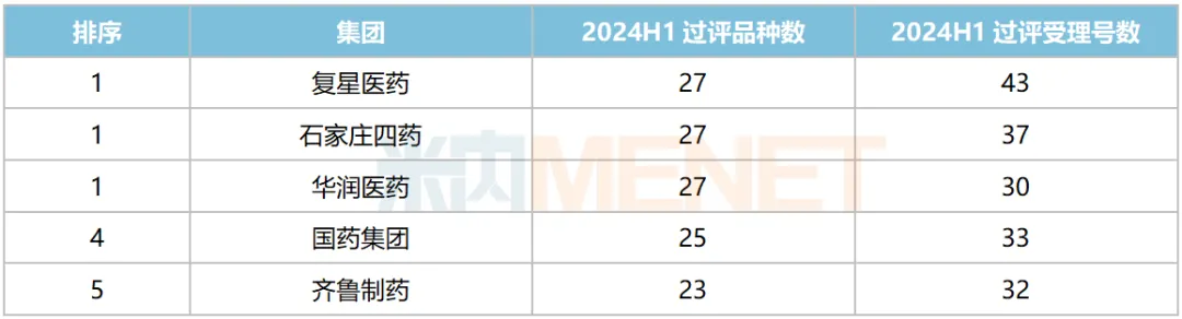 2024H1过评品种数TOP5集团(以上市持有人计)