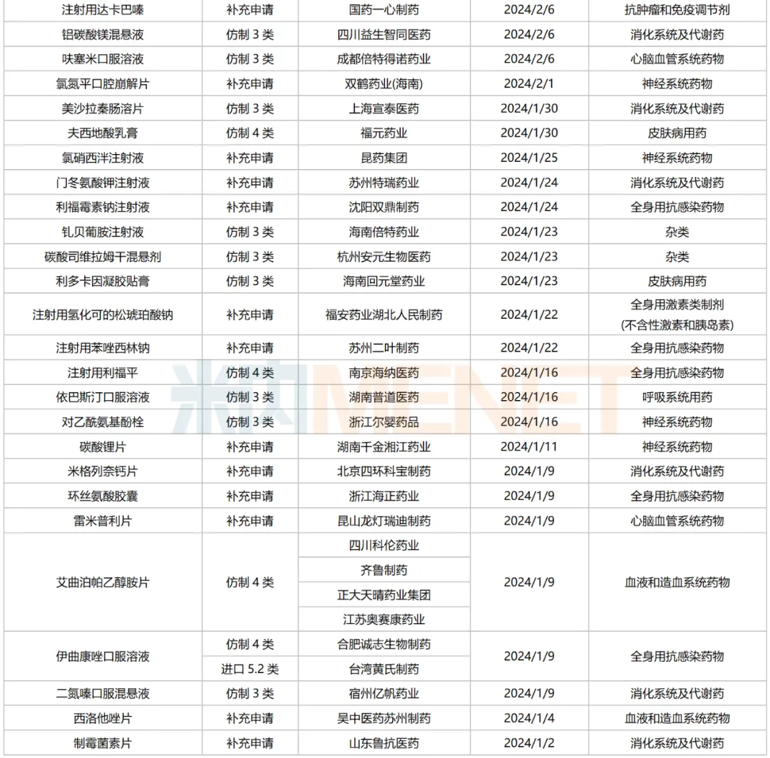来源:米内网一致性评价进度数据库