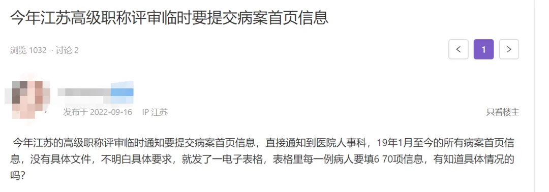 早在2022年,一位江苏的医师就反映:“今年江苏的卫生技术高级职称评审临时通知要提交病案首页信息,直接通知到医院人事科,上传19年1月至今的所有病案首页信息。”