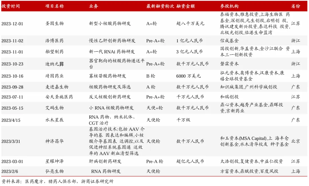 2023年本土药企小核酸融资情况梳理