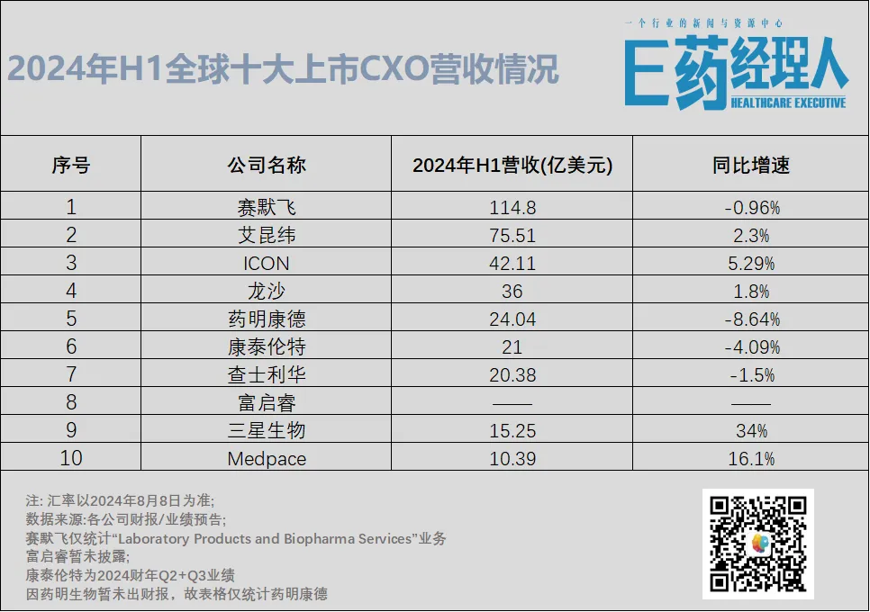 纵观全球前十上市CXO业绩表现,近一半失色。