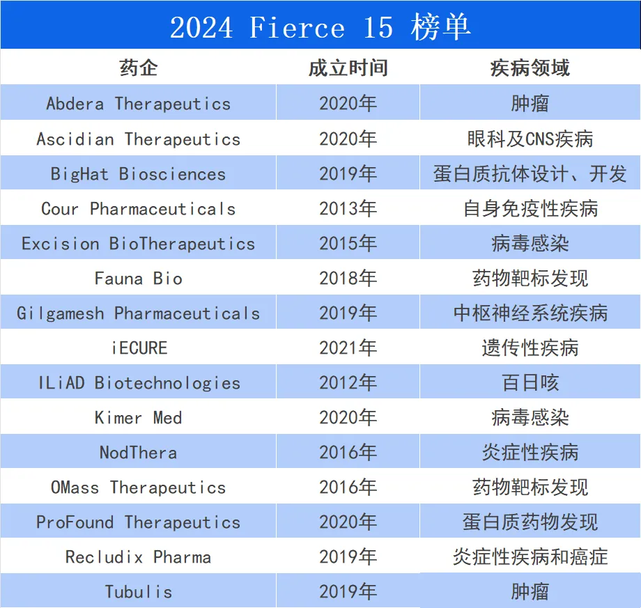 2024年8月5日,行业媒体Fierce Biotech公布了Fierce 15榜单。