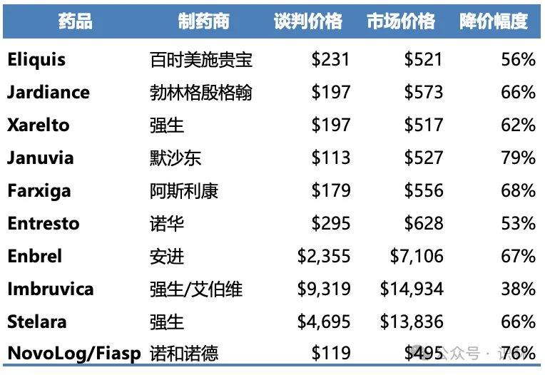 美国联邦医疗保险(Medicare)官员于 8 月 15 日公布了医保谈判前 10 种药品的价格谈判结果。降价幅度很大,除一个药外,所有药物的价格都至少降低了 50%。但新价格要到 2026 年才会生效。