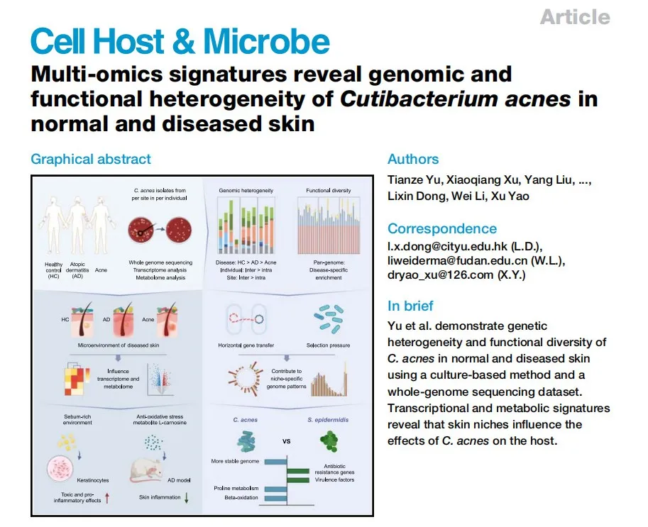 [9] Yu T, Xu X, Liu Y, et al. Multi-omics signatures reveal genomic and functional heterogeneity of Cutibacterium acnes in normal and diseasedskin. Cell Host Microbe. Jul 10 2024;32(7):1129-1146.e1128.