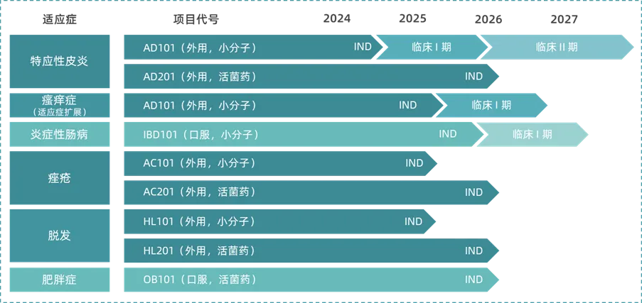 未来五年内,零一生命除了在皮肤微生态领域持续围绕AD、脱发、痤疮等疾病展开系统性研究,在肠道微生态领域也将陆续推出围绕IBD和肥胖等疾病的管线,将前期积累的理论转化开发为更多革命性、且高度安全有效的全球首创新药、护肤品原料和食品原料,以中国原始创新服务世界各地患者和用户的需求。