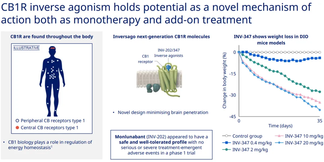 2023年8月,诺和诺德斥资超过10亿美元收购了Inversago Pharma及其主要资产 monlunabant。诺和诺德将有机会在2024年下半年衡量此次买入的价值,届时预计Monlunabant的2期数据将公布。