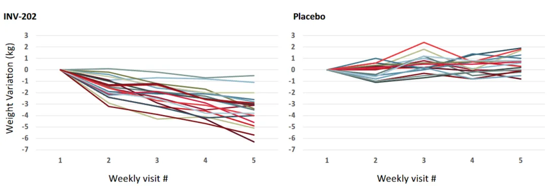 此前Monlunabant的一项随机、安慰剂对照、双盲1b期研究显示,在第28天,该药物使试验参与者的体重平均减轻3.5kg(3.3%),Monlunabant参与者在腰围和BMI方面也有显著降低(P ≤ 0.03),且Monlunabant耐受性良好,未发生严重的治疗中出现的不良事件(图7)[6]。