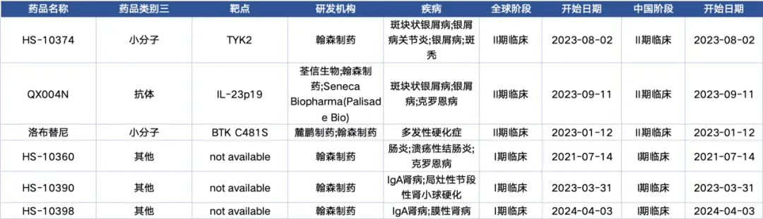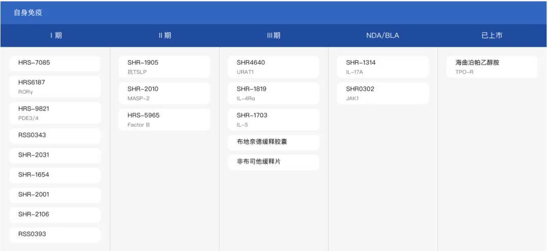 翰森制药一直专注于自身免疫系统疾病领域的新药研发,如1类新药HS-10374片等。目前自免领域共有6条临床在研管线,其中包括今年超11亿元引进的QX004N单抗。