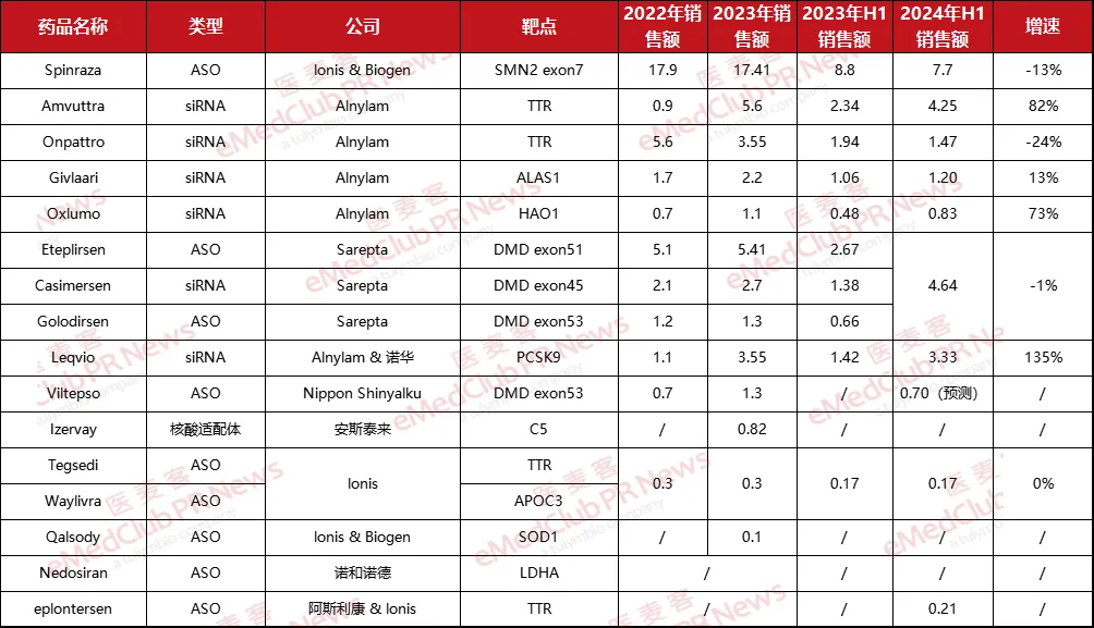 ▲ 全球小核酸药物销售额(亿美元)(图片来源:医麦客整理)
