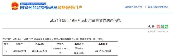 8月19日,据国家药监局网站公示,齐鲁制药的雷珠单抗注射液(QL1205)已获批上市,成为国内首个获批的雷珠单抗生物类似药。