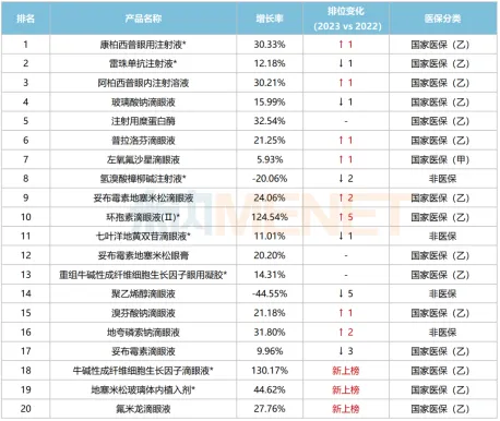 2023年中国公立医疗机构终端眼科用药TOP20产品