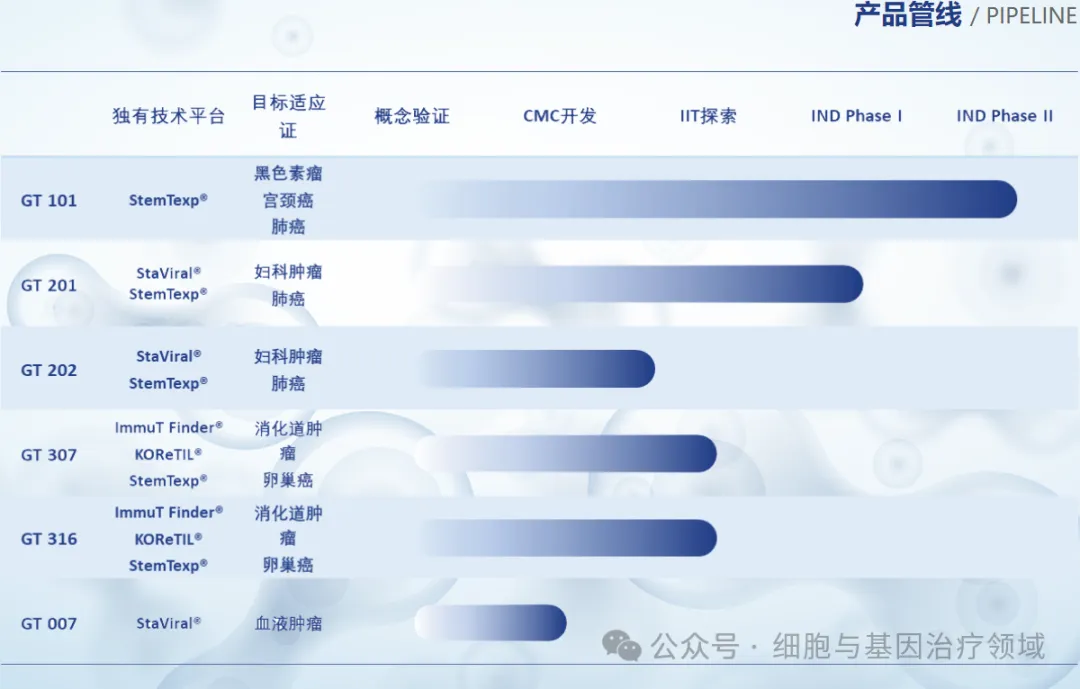 其中,GC101已于2022年4月经国家药监局批准进入临床I期(国内首批)。2023年12月,君赛生物与北京大学肿瘤医院合作开展的一项针对GC101治疗黑色素瘤的临床验证试验完成首例受试者回输给药;GC203于2024年4月28日获得国家药品监督管理局(NMPA)临床试验默示许可(受理号:CXSL2400102),用于治疗晚期实体瘤。2024年5月29日,GC203的I期临床试验(KUNLUN-01)启动会在复旦大学附属肿瘤医院顺利召开,据悉,这是国内第一个正式启动注册临床的基因修饰TIL疗法。