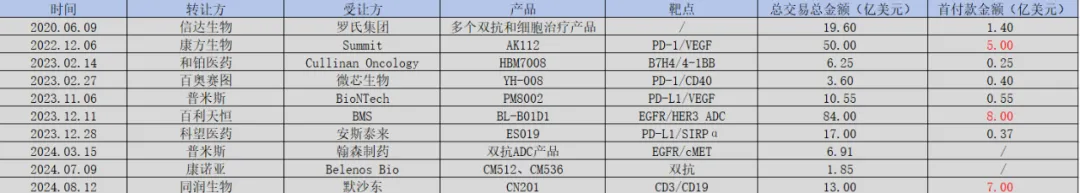 8月9日,默沙东与同润生物达成BD交易,以7亿美元首付款的价格,拿下了CD3/CD19双抗药物CN201的全球权益。这也是继百利天恒之后,中国创新药license-out第二高的首付款。