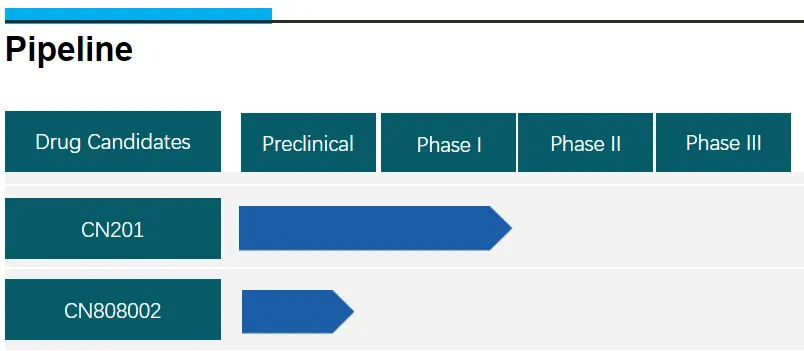 在创新药寒冬的持续下,包括MNC在内的药企均受到较大的资金压力,砍管线成了应对寒冬的必要手段,同润生物也不例外。据润生物官网显示,其目前的临床管线上仅剩下CN201和CN808002等两款产品,除了CN201处于临床试验阶段外,CN808002仍处于临床前阶段。