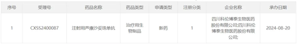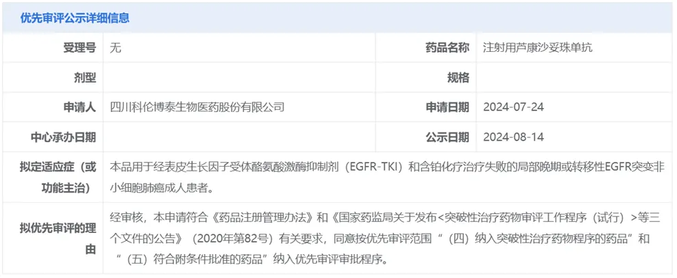 图1. 芦康沙妥珠单抗NDA申请获受理,来源:CDE官网