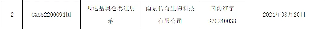 8 月 27 日,NMPA 官网显示,传奇生物递交的西达基奥仑赛注射液的上市申请已获得批准(受理号:CXSS2200094),用于治疗既往接受过一种蛋白酶抑制剂和一种免疫调节剂治疗后复发或难治性多发性骨髓瘤。Insight 数据库显示,此前中国已经有 5 款 CAR-T 获批,西达基奥仑赛是第 6 款在国内获批的 CAR-T,也是全球首个且唯一获批用于多发性骨髓瘤患者二线治疗的 B 细胞成熟抗原(BCMA)靶向疗法。