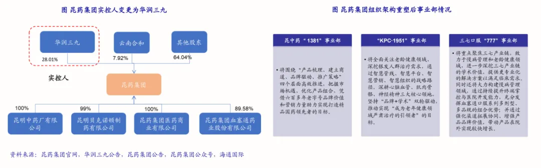 华润三九一直聚焦心脑血管等慢病康复领域,此次通过并购昆药集团补充了“昆中药1381”传统精品国药品牌。值得一提的是,“昆中药1381”品牌是中国五大中药老字号之一、至今已有643年历史。