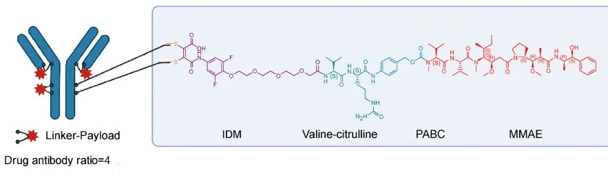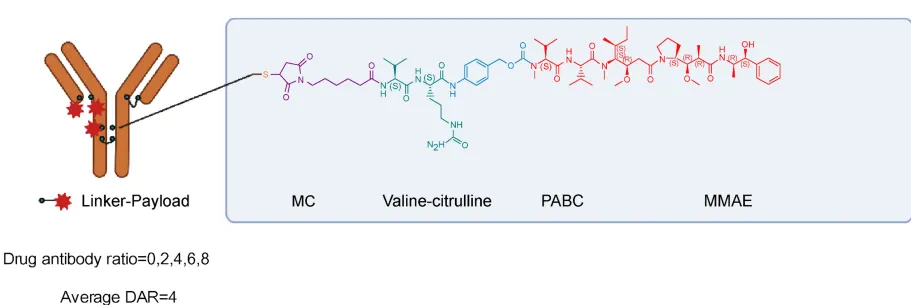 维恩妥尤单抗( Enfortumab Vedotin)结构↑↑(图片来源:doi: 10.1158/1535-7163.MCT-22-0743)