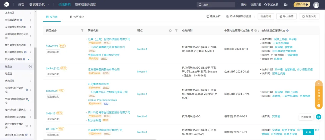 据 Insight 数据库显示,目前全球在研的处于活跃状态的 Nectin-4 ADC 共有 22 款,其中,中国企业有 10 款。除了迈威的 9MW2821 进展到 III 期临床外,恒瑞和石药集团的分别进展到 I/II 期,科伦博泰和百奥泰也均已进入 I 期临床。