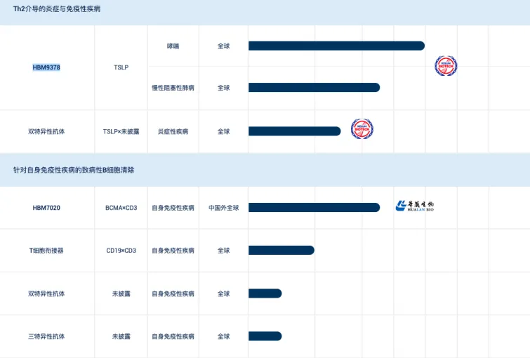 这背后反映的是,和铂医药在产品管线战略上的演进,已经从主要关注肿瘤治疗的1.0时代,过渡到了一个更多元化的2.0时代。可以看到,和铂医药已经有多个自主研发的自免管线落地。其中,进展最快的是差异化设计的TSLP 单抗HBM9378,已经进入1期临床阶段。