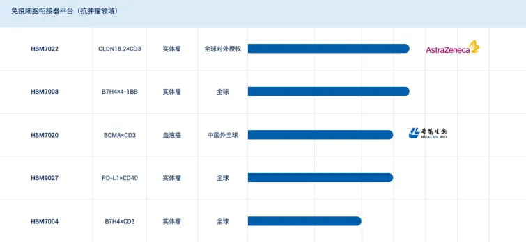 当然,在2.0时代,和铂医药并不是一味的追求做宽,同时也在追求做精。例如,在目前最火热的TCE双抗领域,和铂医药是全球布局最深入的选手之一,拥有包括CLDN18.2×CD3双抗HBM7022、BCMA×CD3双抗HBM7020、B7H4×CD3双抗HBM7004在内的诸多管线。