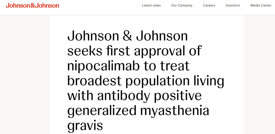 8月29日,强生宣布向FDA提交生物制品许可申请 (BLA),寻求在全球范围内首次批准FcRn单抗nipocalimab用于治疗全身性重症肌无力 (gMG) 患者。