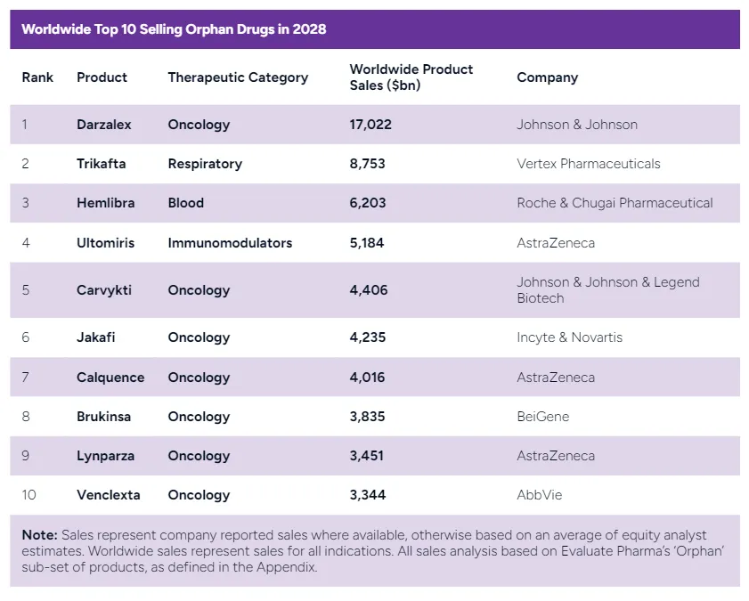 2028 年,十大最有价值的孤儿药将合计创造超过570亿美元的收入。