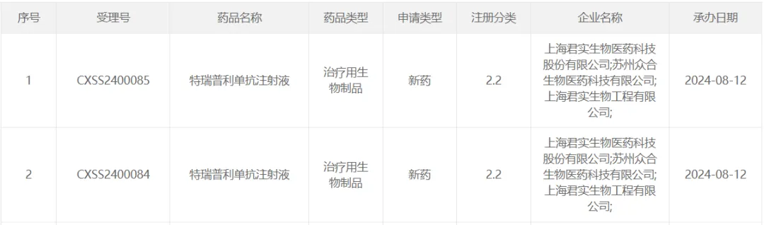 1、君实生物「特瑞普利单抗」