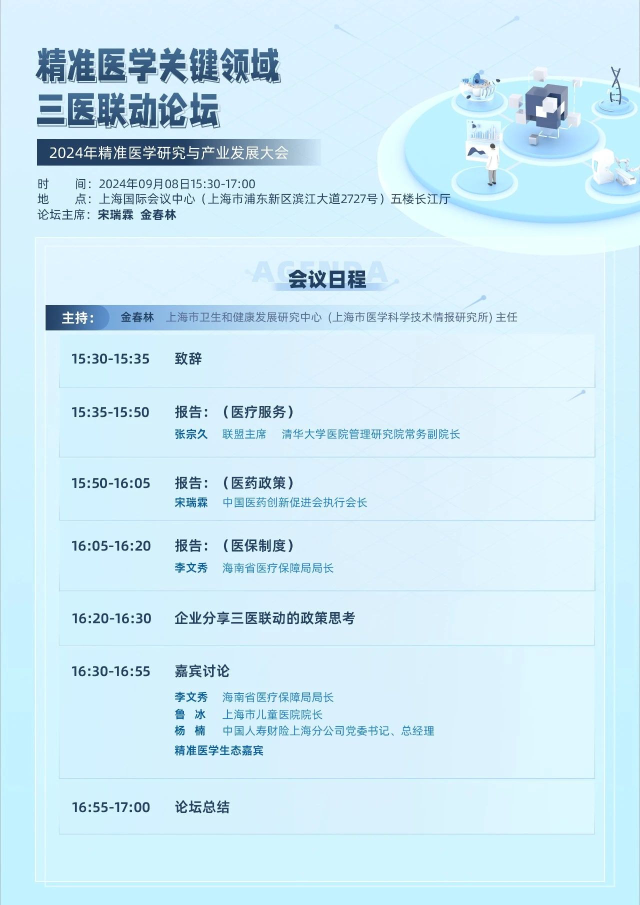 其中“精准医学关键领域-三医联动论坛”汇聚了众多业界专家与学者,共同探讨医疗服务、医药政策及医保制度三大领域的协同创新发展。本论坛以三医联动机制为核心,深入挖掘其在提升诊疗效率、优化医疗服务流程以及改善患者就医体验等方面的最新进展与实践成果。同时,论坛还紧密结合精准医学的前沿研究与发展趋势,致力于推动三医联动与精准医学的深度融合,共同助力健康事业的蓬勃发展。