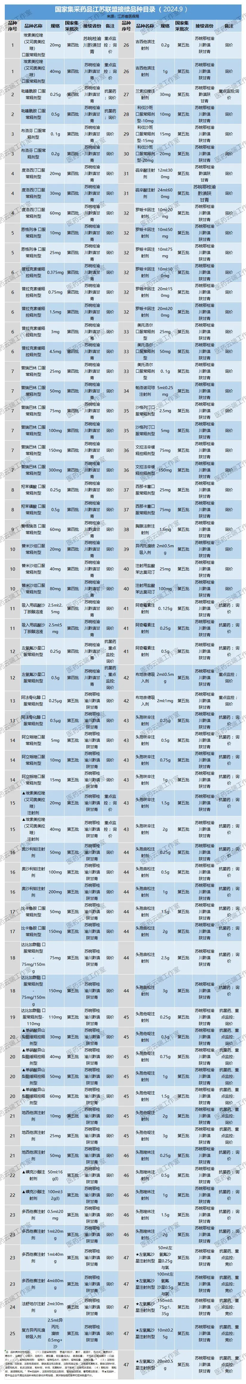 此次纳入接续共47个品种125个品规,其中,原第4批的12个(32个品规),第5批的35个(93个品规)。