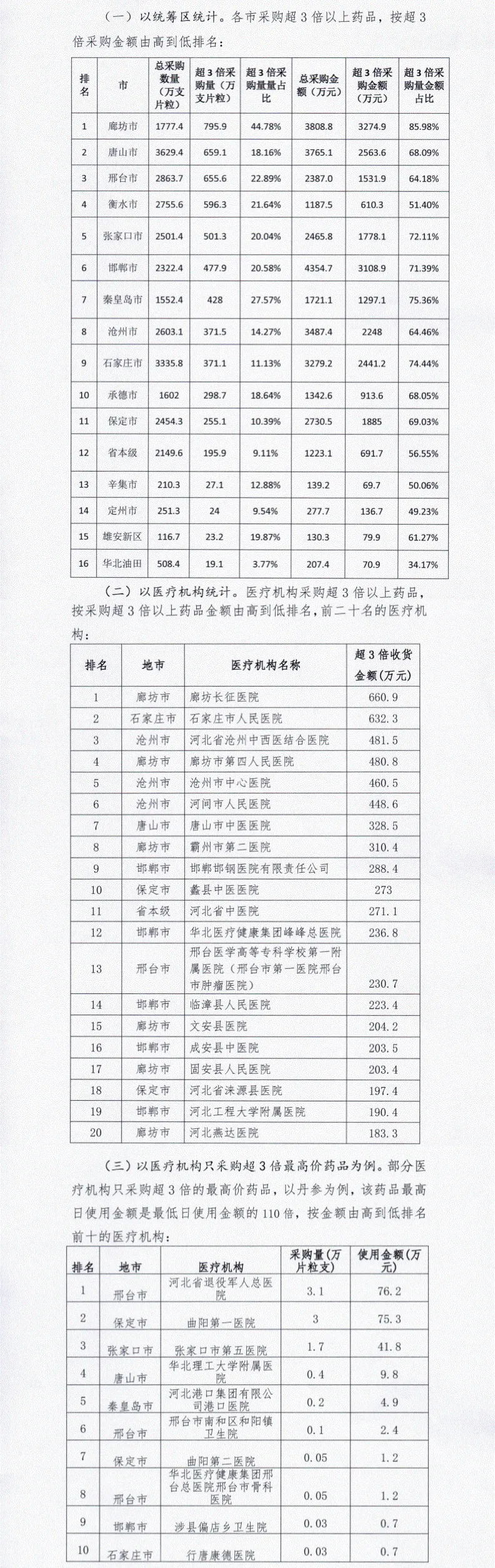 近日,河北省医保局向下级单位及省直医疗机构下发了多份文件,其中一份对各市及医疗机构采购中成药情况进行了通报(以下简称《通报》),30家医院被点名。