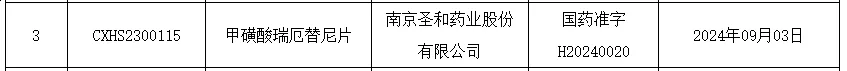9 月 9 日,据 NMPA 官网显示,圣和药业 1 类创新药甲磺酸瑞厄替尼第二项适应症获批,用于 EGFR 敏感突变的局部晚期或转移性非小细胞肺癌(NSCLC)患者一线治疗(受理号:CXHS2300115)。