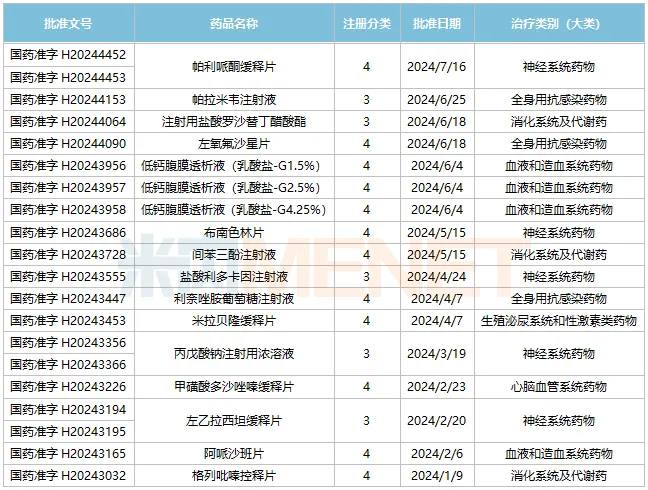 存量品种一致性评价方面,华润双鹤的氯氮平口崩片、注射用更昔洛韦、异烟肼片、腹膜透析液(乳酸盐-G1.5%)、腹膜透析液(乳酸盐-G4.25%)、腹膜透析液(乳酸盐-G2.5%)、吡拉西坦注射液、注射用奥美拉唑钠、白消安注射液相继过评。