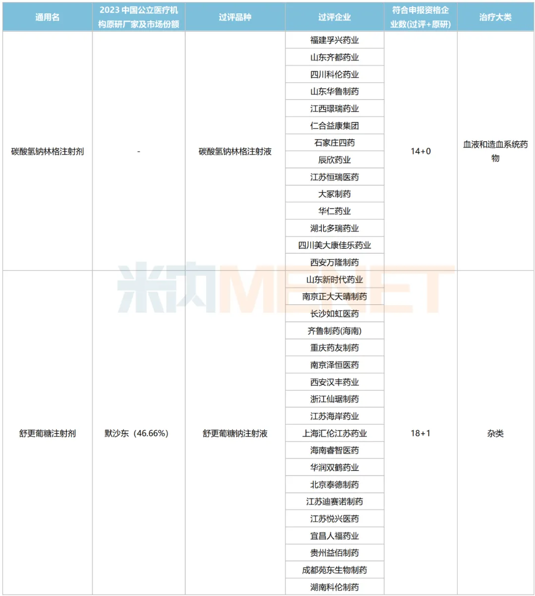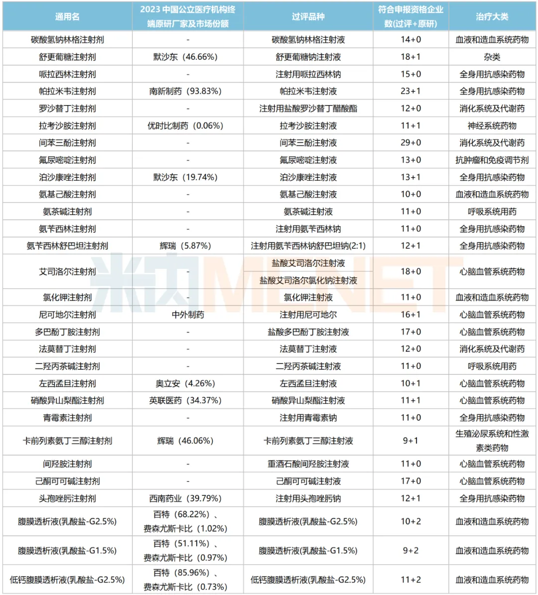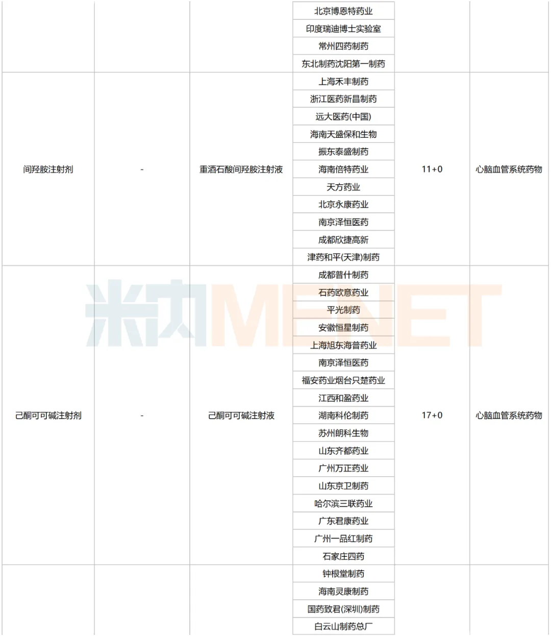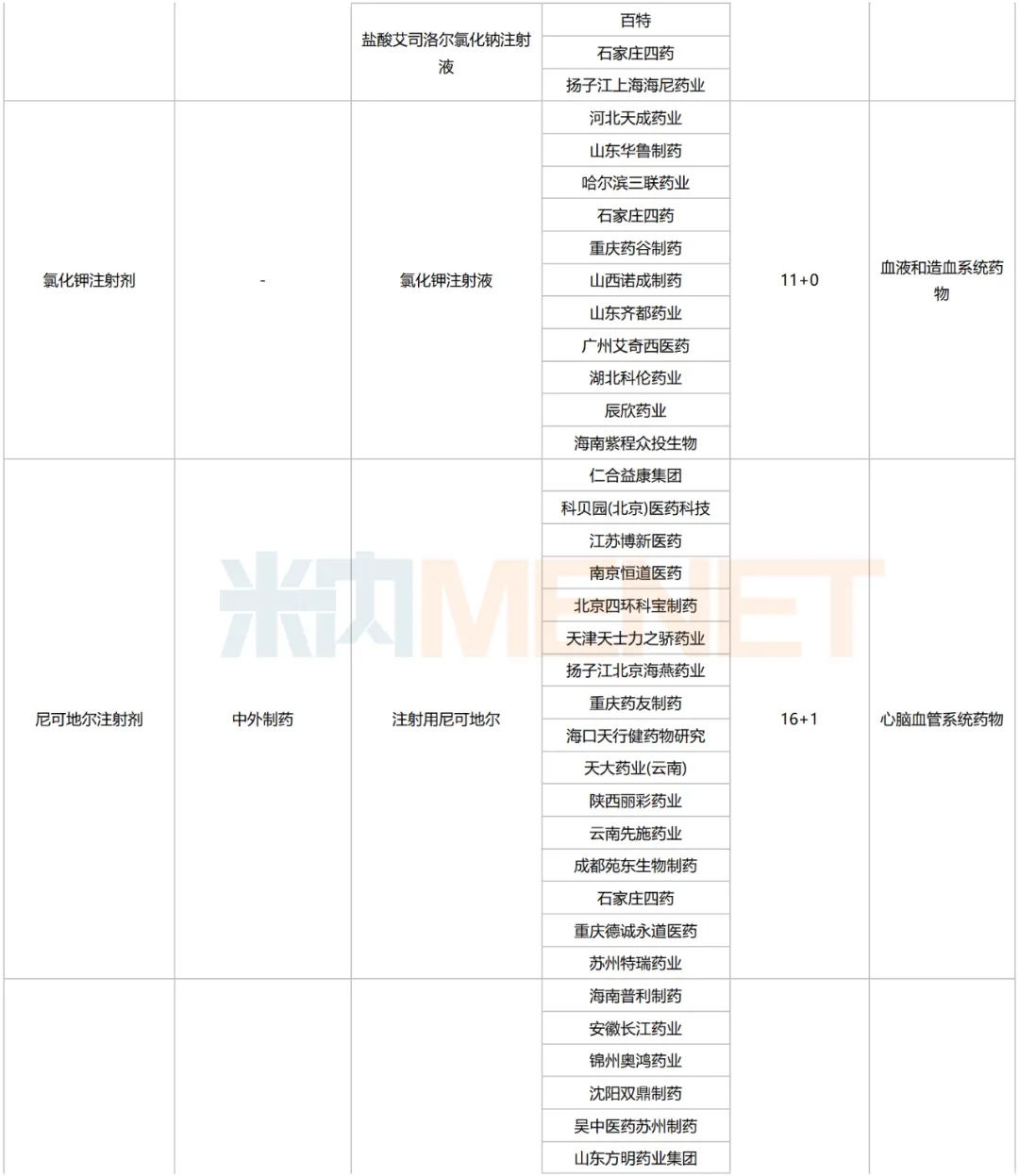 符合申报资格企业数≥10家且暂未纳入国采的品种(详细表格见文末)