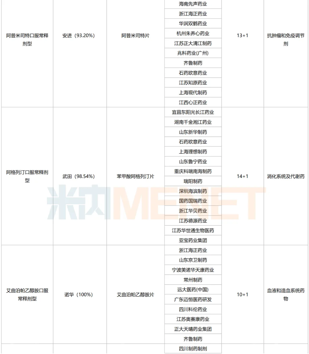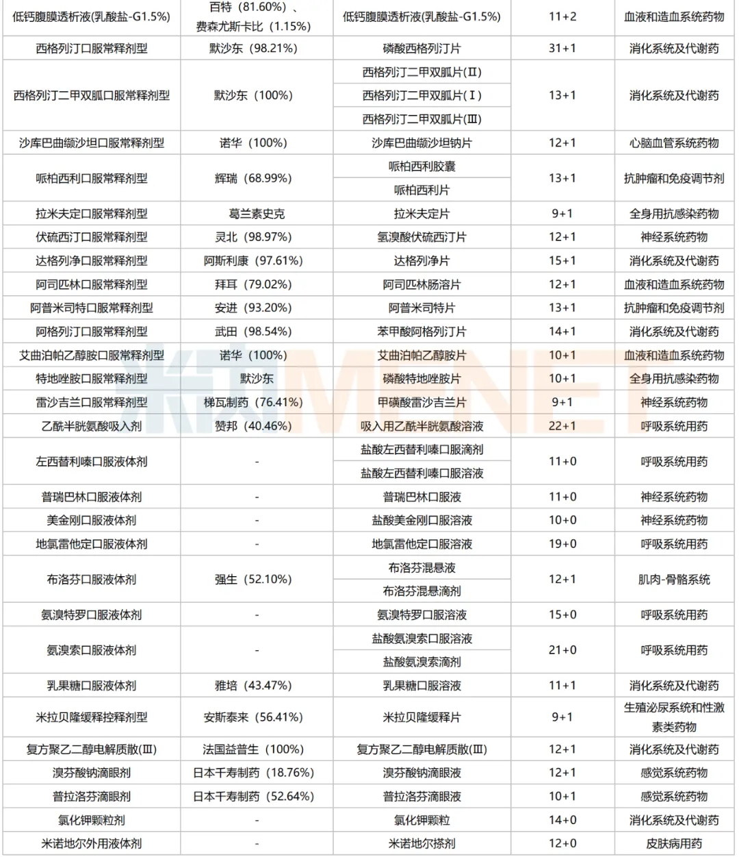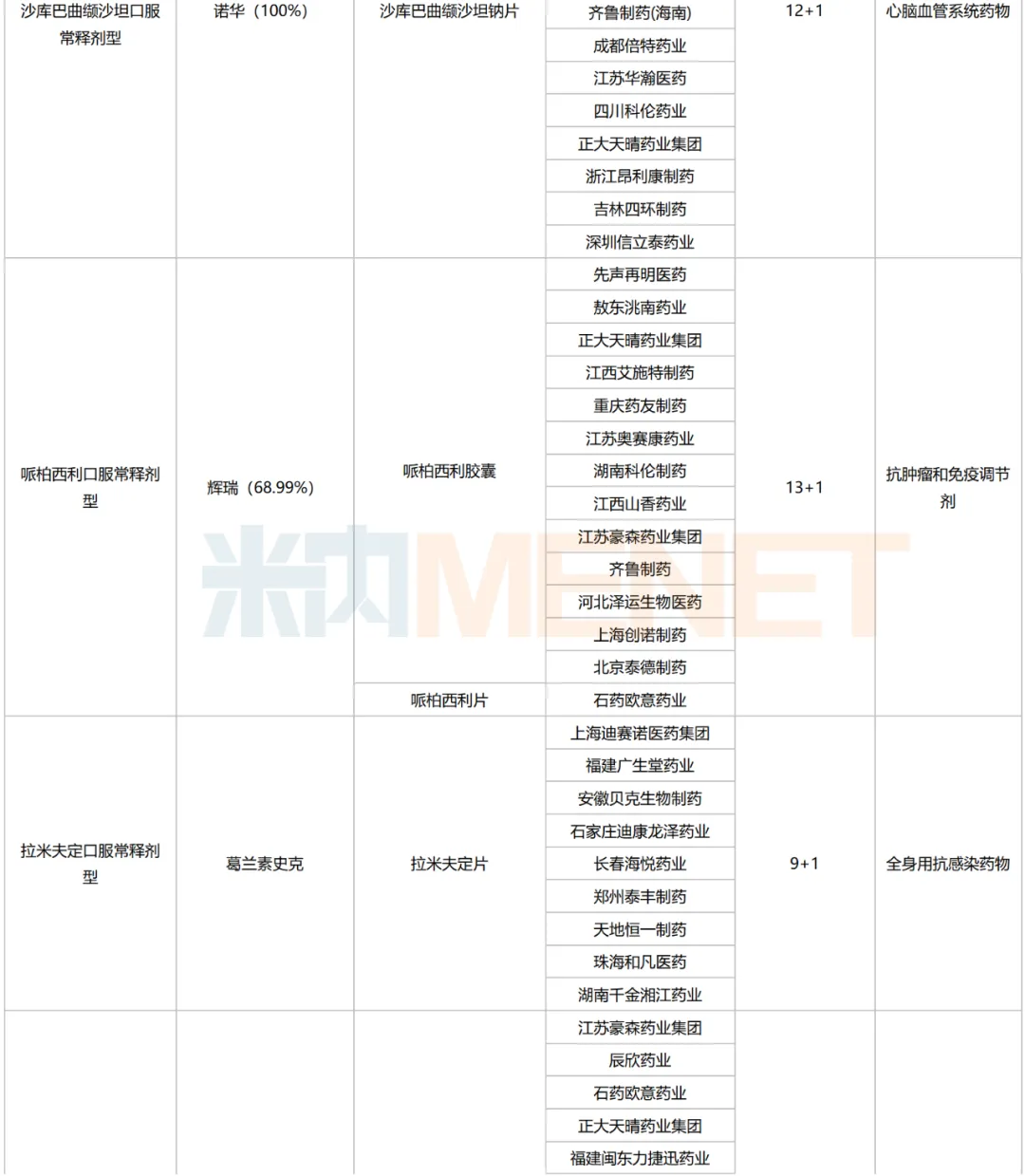 注:部分药品因专利期、产品属性等可能不会被纳入集采,一切信息以官方为准!企业数按集团统计