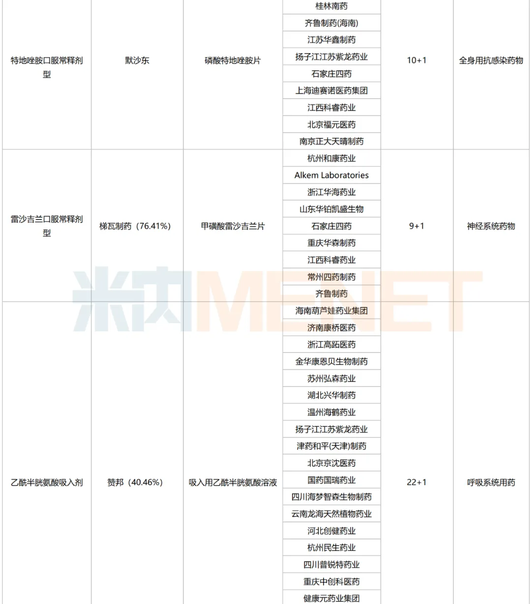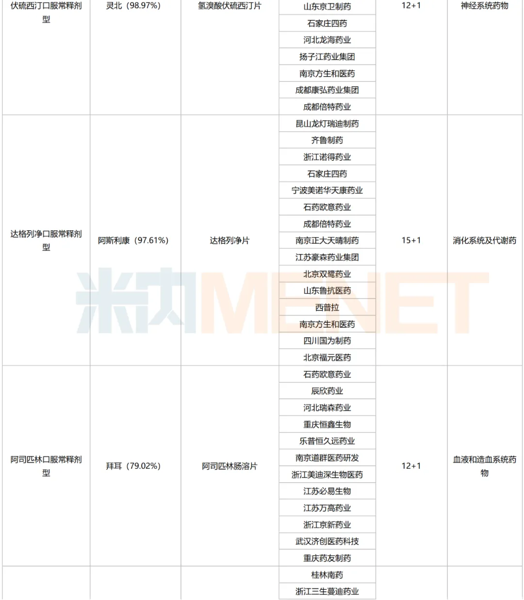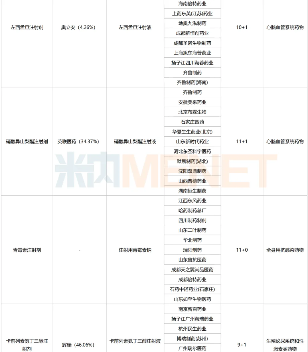 注:部分药品因专利期、产品属性等可能不会被纳入集采,一切信息以官方为准!企业数按集团统计