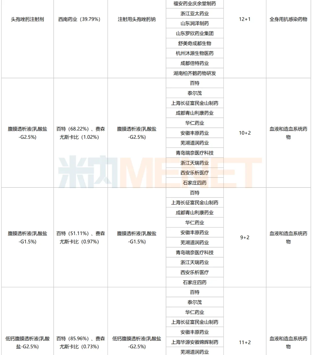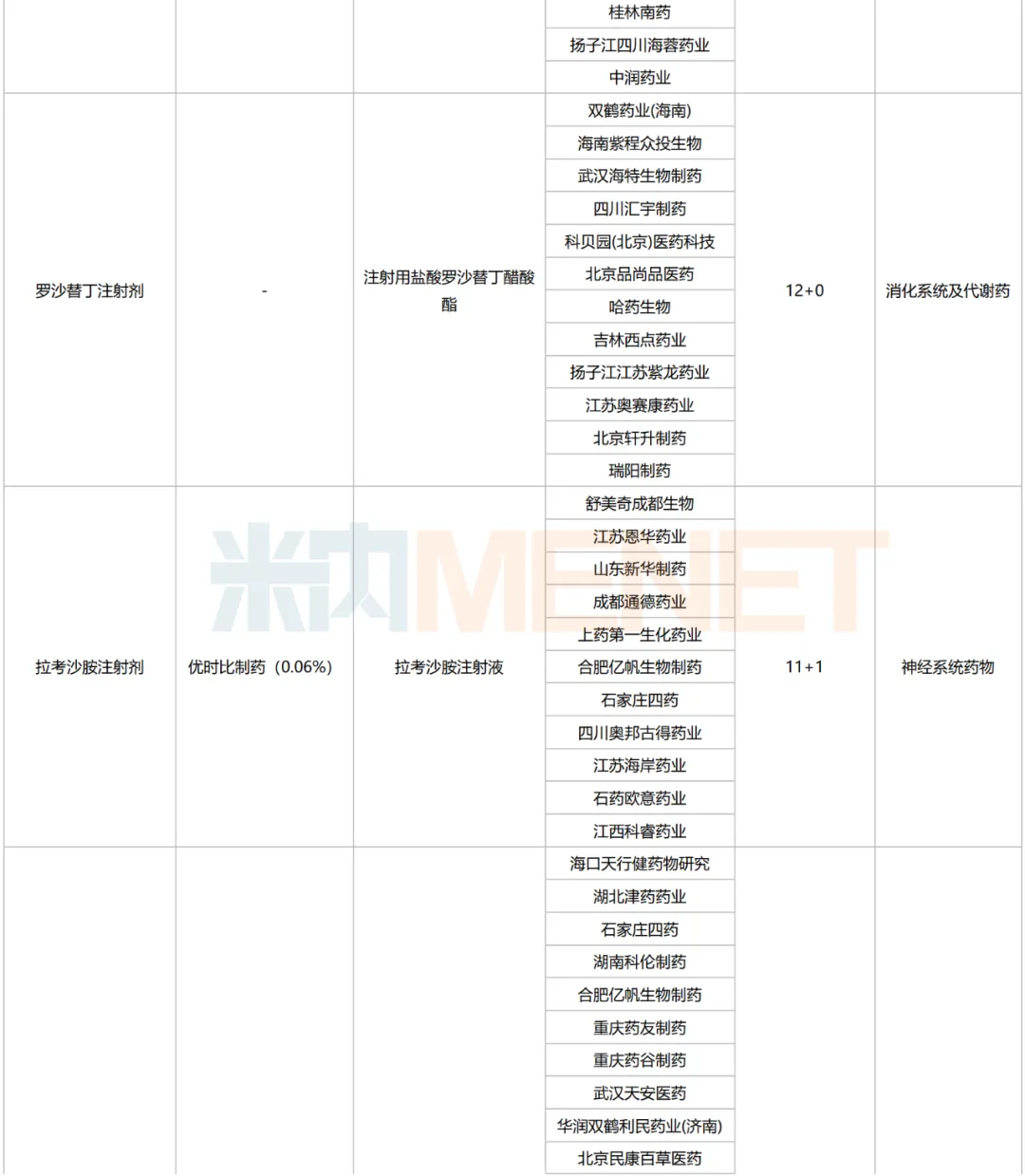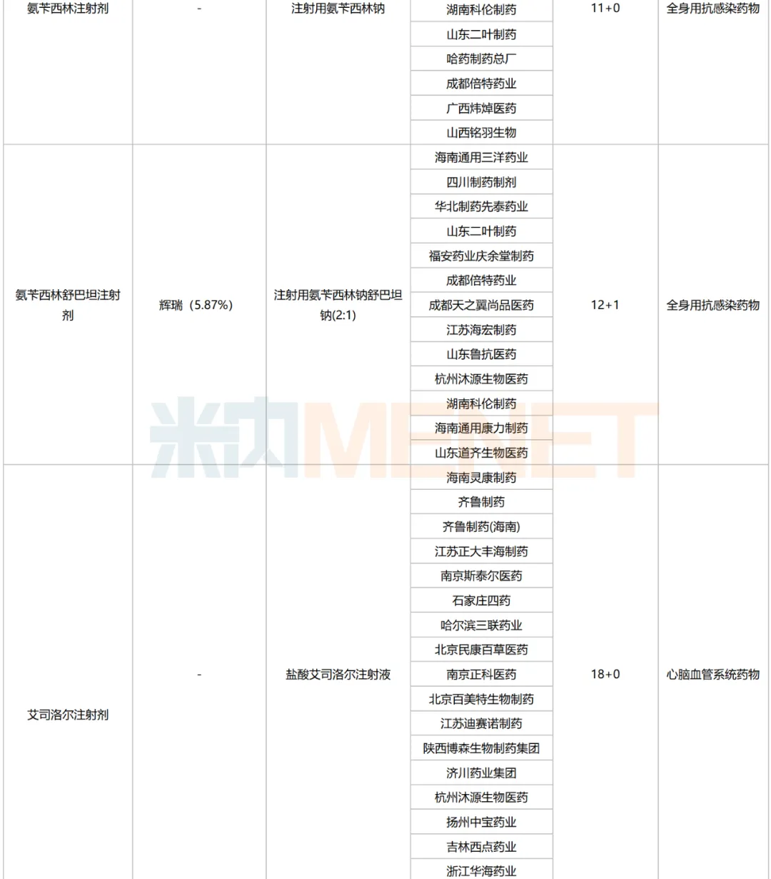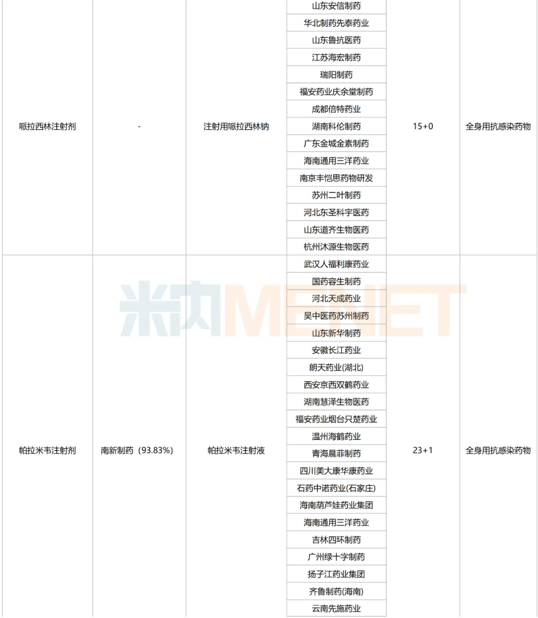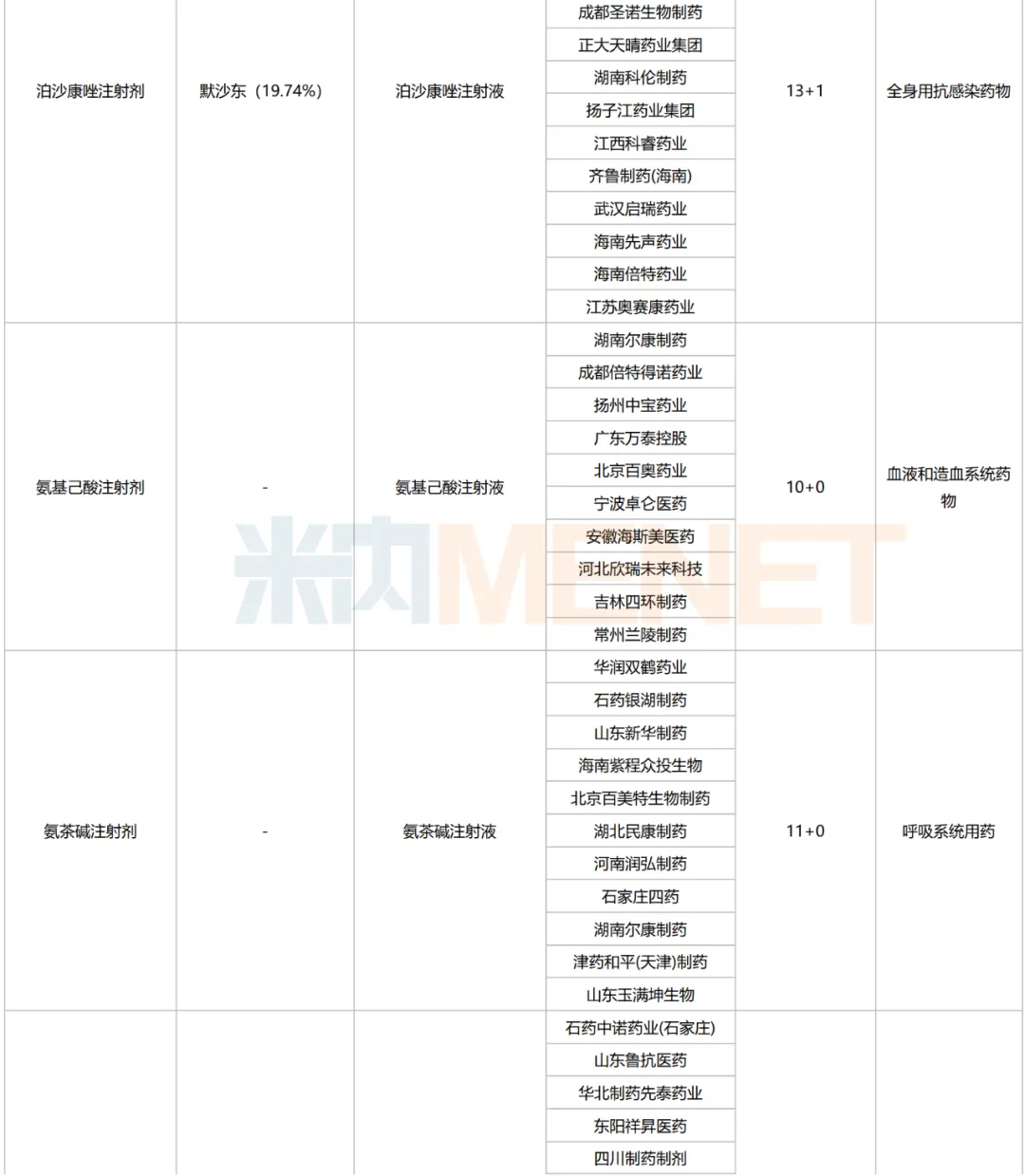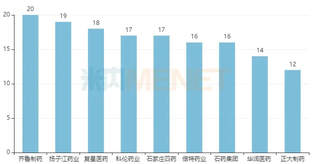 从企业看,齐鲁制药、扬子江药业、复星医药、科伦药业、成都倍特药业、石家庄四药、石药集团、华润医药、正大制药均有10个以上的品种在列。