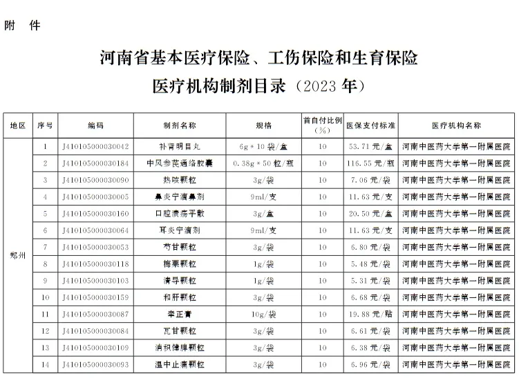 9月10日起,河南省正式执行《河南省医疗保障局 河南省人力资源和社会保障厅关于印发<河南省基本医疗保险、工伤保险和生育保险医疗机构制剂和中药饮片目录(2023年)的通知》(以下简称《目录》)。