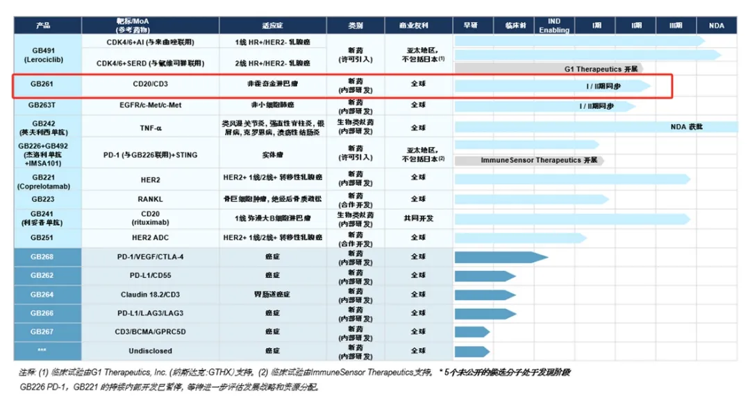 GB261是一种新型差异化CD20/CD3双特异性T细胞接合剂 (TCE),具有超低CD3结合亲和力和完整的Fc功能 (ADCC和CDC)。2024年8月5日,嘉和生物与TRC 2004公司就GB261订立了相关的许可协议及股权协议。