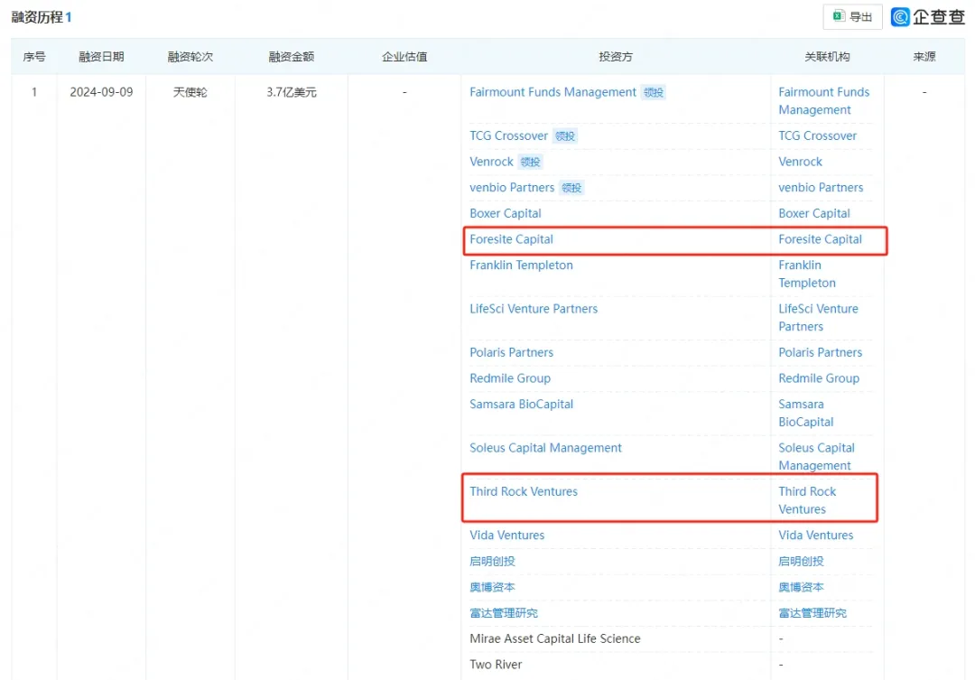 Candid Therapeutics, Inc.3.7亿美元的融资投资方名单,来源:企查查